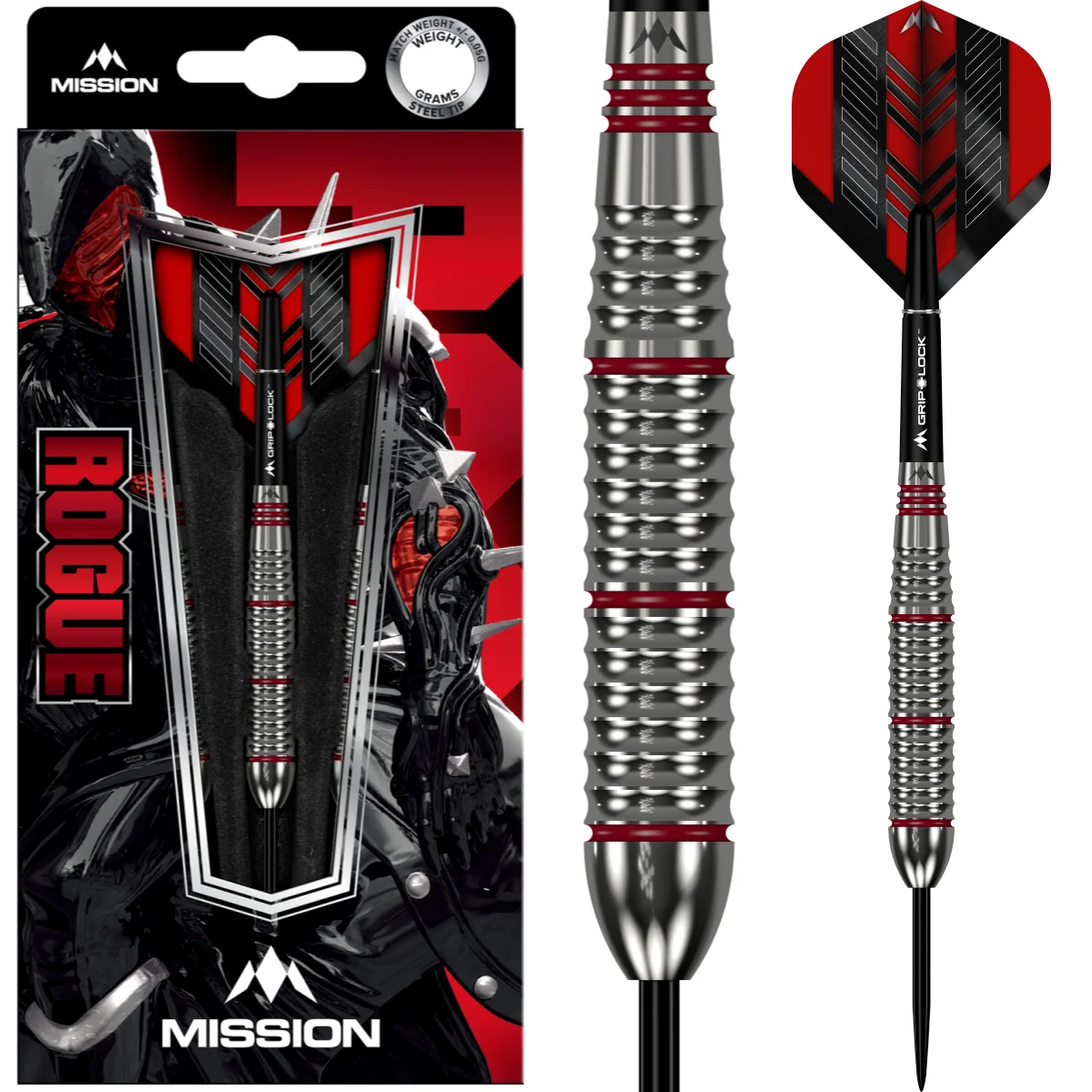 Gładka tylna część barrela została ozdobiona laserowo grawerowanym logo Mission. Lotki Rogue są wyposażone w czarne groty oraz krótkie, shafty Mission GripLock, które pewnie utrzymują piórko na miejscu.