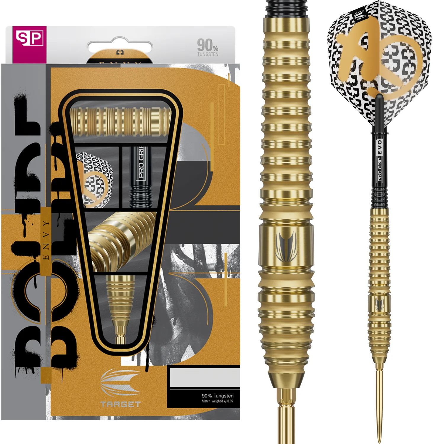 Zestaw uzupełniają shafty Pro Grip EVO, precyzyjnie formowane dla zwiększonej trwałości i pewnego trzymania piórek, w połączeniu z piórkami Pro Ultra Bolide Envy No.6, które podkreślają odważny design lotek i zapewniają stabilny tor lotu.