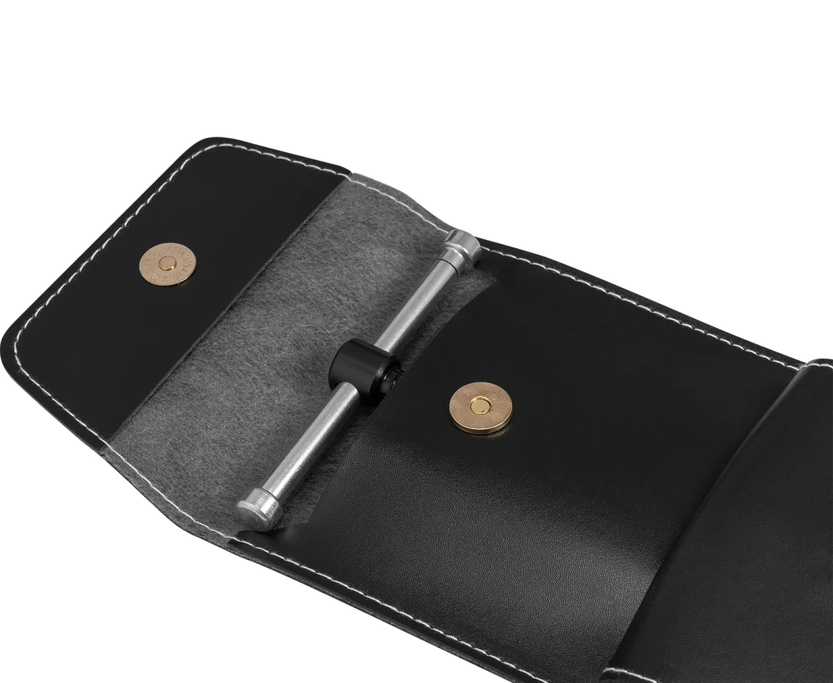 Narzędzie jest dostarczane w wytrzymałym, miękkim etui, które zapewnia bezpieczne i wygodne przechowywanie zarówno samego narzędzia, jak i akcesoriów oraz zapasowych grotów.