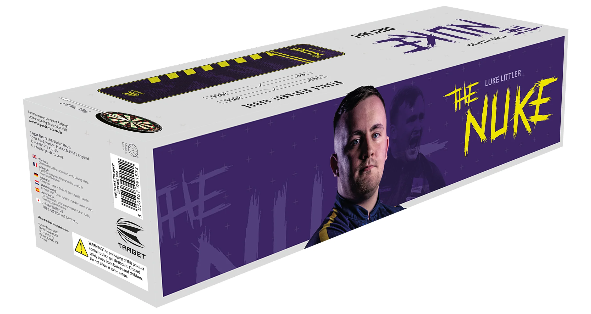 Mata do rzutek opracowana we współpracy z „The Nuke”, Mistrzem Premier League 2024 charakteryzuje się wyrazistym fioletowo-żółtym brandingiem Luke'a oraz logo „The Nuke”. Ta mata o standardzie turniejowym posiada precyzyjne oznaczenia linii rzutu zarówno dla rzutek z plastikową, jak i stalową końcówką, zapewniając dokładność i spójność podczas każdego rzutu.
