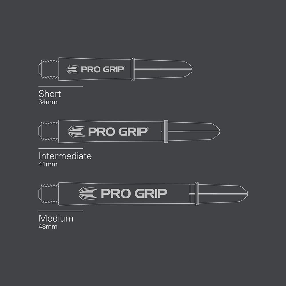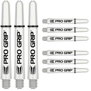 Wykonane ze specjalnie opracowanej mieszanki nylonu, shafty Pro Grip są niezwykle trwałe. Każdy shaft Pro Grip jest również dostarczany z pierścieniem Target Pro Grip dla dodatkowej przyczepności lotu.
